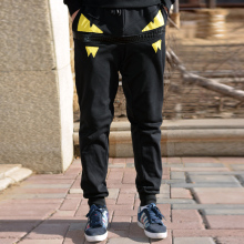 卫裤 潮牌个性小萌态怪兽情侣卫裤加肥加大修身收脚锥形长裤慢跑