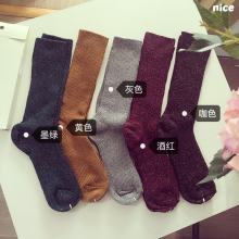 欧美风秋冬季新款中长款亮丝堆堆袜 保暖纯色中筒袜 短靴袜子