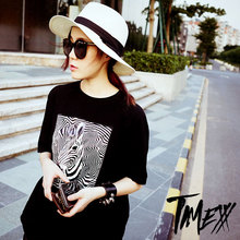 原创设计 街头BF风刺绣动物印花宽松中长款短袖T恤女 夏季情侣装