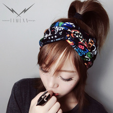原创交叉发带日式和风 印花复古宽边头饰 嬉皮欧美发饰发箍头巾潮