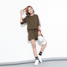2017夏装新款两件套字母休闲宽松大码时尚t恤短袖短裤运动套装女