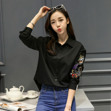 衬衫女2016春季新款女装文艺百搭长袖衬衣蝴蝶花款式休闲打底衫