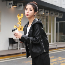 2017新款女装外套休闲夹克皮衣女春秋欧美宽松短款加大码连帽上衣
