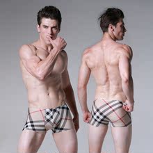 潮男内裤冰丝无痕一片式低腰平角裤u凸性感超薄印花条纹四角裤头