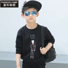 PIONEER KIDS冬男童卫衣套头加绒加厚圆领外套中大童字母卡通上衣