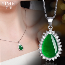 祖母绿玛瑙项链女 925银日韩复古红宝石红刚玉镶钻项链吊坠送妈妈
