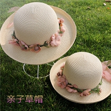 草帽亲子夏天帽子海边沙滩花朵花环遮阳帽儿童宝宝防晒太阳帽子