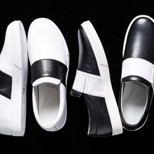 修斯戈特男士乐福鞋真皮板鞋黑白拼色懒人休闲鞋透气套脚板鞋单鞋
