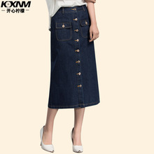 牛仔半身裙春季女2017新款韩版纯色百搭中长款单排扣a字裙带口袋