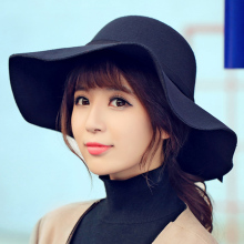 礼帽女英伦复古欧美大檐百搭爵士帽韩版光板毛呢帽夏季遮阳毛毡帽