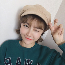 韩版秋冬麂皮绒潮女八角帽画家帽纯色贝雷帽户外遮阳防嗮帽鸭舌帽