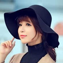 英伦复古秋冬天毛呢大檐帽 韩版圆顶波浪边大沿礼帽遮阳帽子女