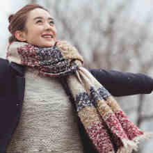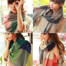冬季长格子针织围巾韩国女学生围巾披肩 加厚毛线针织秋冬围脖