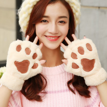暴爪手套女冬可爱半指男女加厚冬季保暖韩版卡通猫咪爪子毛绒冬天
