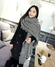 人气新款冰冰同款千鸟格围巾欧美大牌黑白格子仿羊绒披肩男女通用