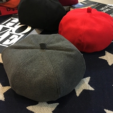 韩国秋冬天毛呢贝雷帽复古画家帽蓓蕾帽纯羊毛线帽子女韩版潮冬季