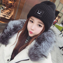 帽子女冬天韩版笑脸毛线帽女秋冬季时尚百搭针织情侣保暖针织帽