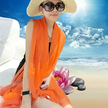 夏季纯色防晒丝巾 防紫外线沙滩巾春秋长披肩女 纱巾围巾超大雪纺