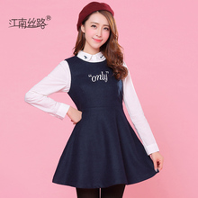 少女秋冬新款学院风英伦初高中学生修身连衣裙少女打底毛呢背心裙