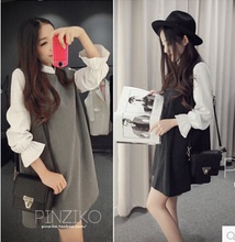 2017春夏季韩版新款长袖连衣裙假两件套春秋大码学生显瘦中短裙女