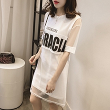 2017夏季新款韩版时尚t恤连衣裙女装中长款学生显瘦白色短袖裙子