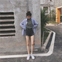 2017夏季新款做旧须边磨破百搭直筒裤韩国修身显瘦牛仔短裤学生潮