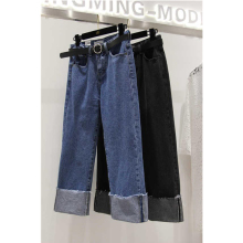 直筒牛仔裤女宽松韩版学生高腰九分裤bf风阔腿裤韩国夏季哈伦裤女