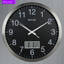 Riyue14英寸静音客厅挂钟日历钟温度挂表学校教室石英钟酒店时钟