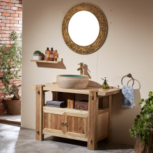 古古拉风现代中式仿古实木浴室柜组合 田园乡村原木洗手台盆柜