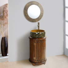 古古拉风小户型中式仿古浴室柜组合 田园卫浴柜圆桶卫生间洗手台