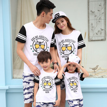优宝优贝亲子装夏装2017新款迷彩短袖母子母女一家三口套装全家装