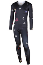 男装套装黑色数码印花潮 加绒保暖内衣贴身长袖修身