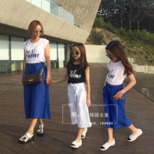 韩版阔腿裤+T恤背心套装女童裤春夏亲子休闲裤七分裤棉麻哈伦裤子