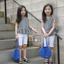 夏装韩版女童短袖T恤无袖娃娃衫中大儿童纯棉荷叶边小清新2017夏