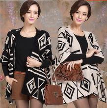 2016春装新款宽松大码女装千鸟格针织衫开衫羊绒披肩毛衣女外套