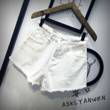 樱美铺2016百搭宽松显瘦弹力白色做旧毛边高腰牛仔热裤女短裤夏
