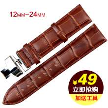 机械真皮牛皮表带男女蝴蝶扣通用各品牌手表针扣皮带20mm防汗防臭