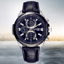 新款潮流多功能石英表手表男士防水大表盘腕表夜光日历真皮带男表