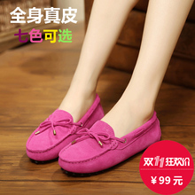 艾印2015新款平底蝴蝶结时尚豆豆鞋女真皮秋磨砂韩版潮平底开车鞋