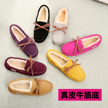 艾印豆豆鞋女真皮加绒冬季棉蝴蝶结新款韩版潮毛毛平底保暖包子鞋