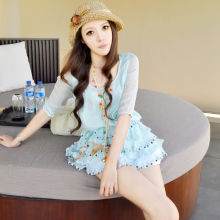 T-Baby韩版 夏装新款女装 长袖宽松镂空蕾丝衫上衣蝙蝠袖衫连衣裙
