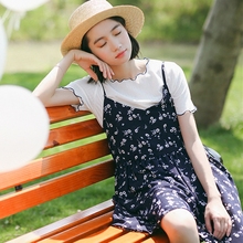 吊带连衣裙女夏装中长款碎花裙2017新款甜美背带裙裙子显瘦吊带裙