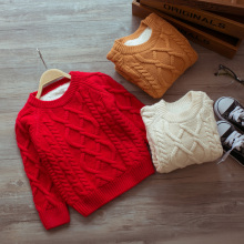 冬季新款1-2-3岁男女童麻花纯色加绒加厚套头针织衫宝宝毛衣线衣