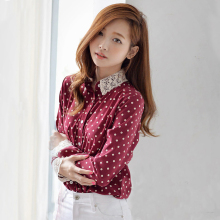 2016春秋装韩版新品蕾丝娃娃领长袖波点衬衫上衣女装百搭修身显瘦