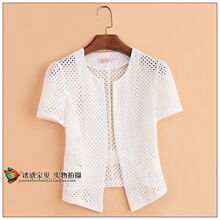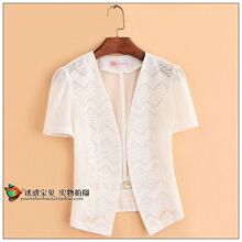 韩版蕾丝小西装女夏薄短外套小披肩百搭短款短袖镂空薄开衫防晒衣