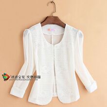 防晒衣女士开衫网纱小披肩夏薄短外套百搭2017短款白色修身小西装
