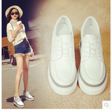 2016春秋新款厚底松糕鞋复古英伦风布洛克流苏女单鞋休闲鞋小白鞋