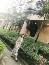 现货韩国代购 2017女装春装新款花色连衣裙中长裙气质碎花裙韩