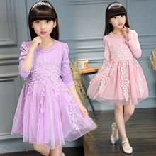 女童2017春夏长袖连衣裙中大童蕾丝公主裙儿童新款夏装裙子4-12岁