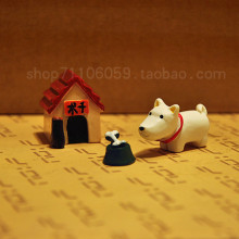 田园小狗奶牛小猪三件套 狗狗骨头房子树脂小摆件多肉苔藓微景观